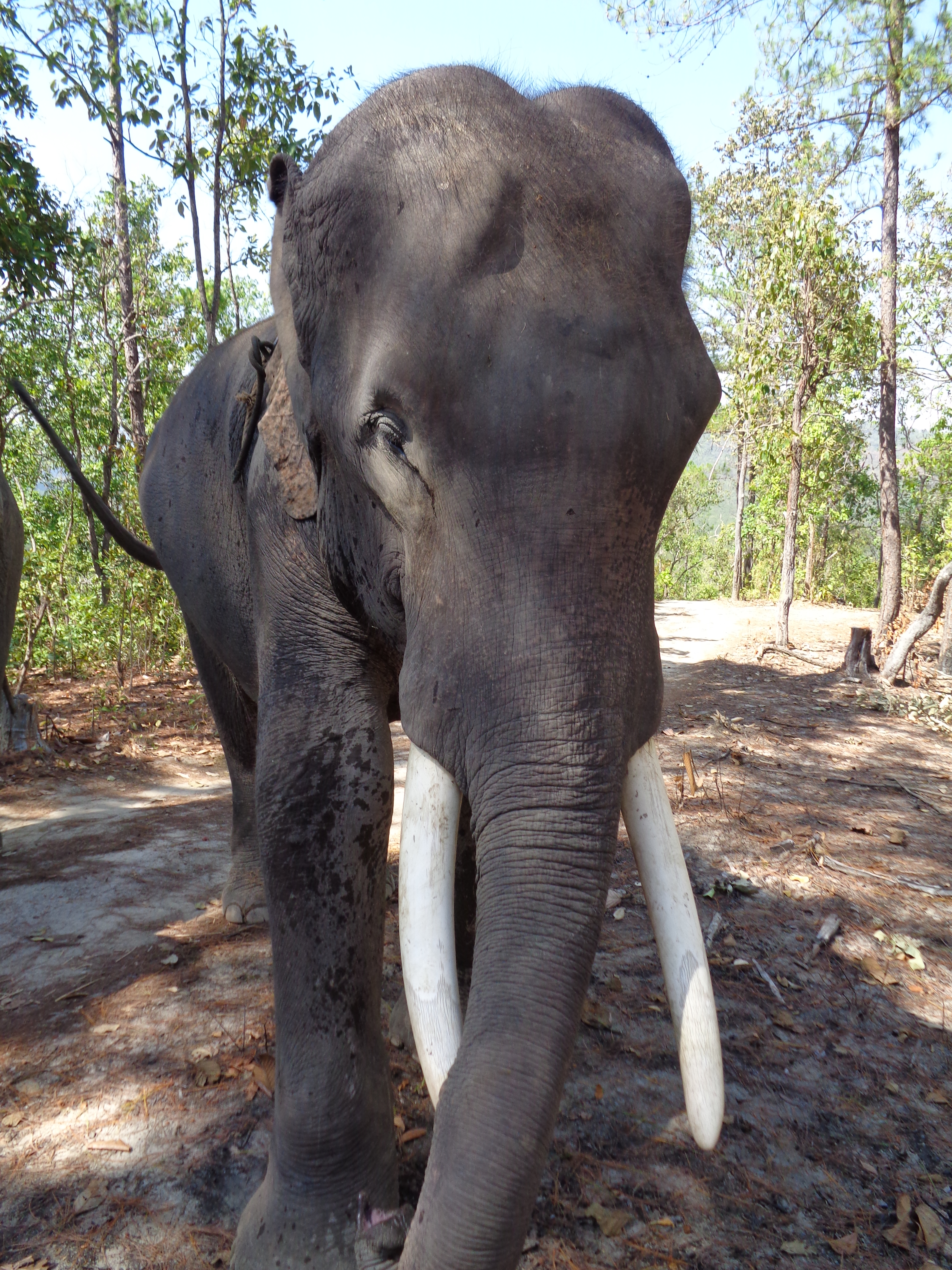 • Instruct your elephant to lower its trunk and just walk up it before pirouetting into place at the head. This was not an option for SO with Boput’s tusks being a major hazard.